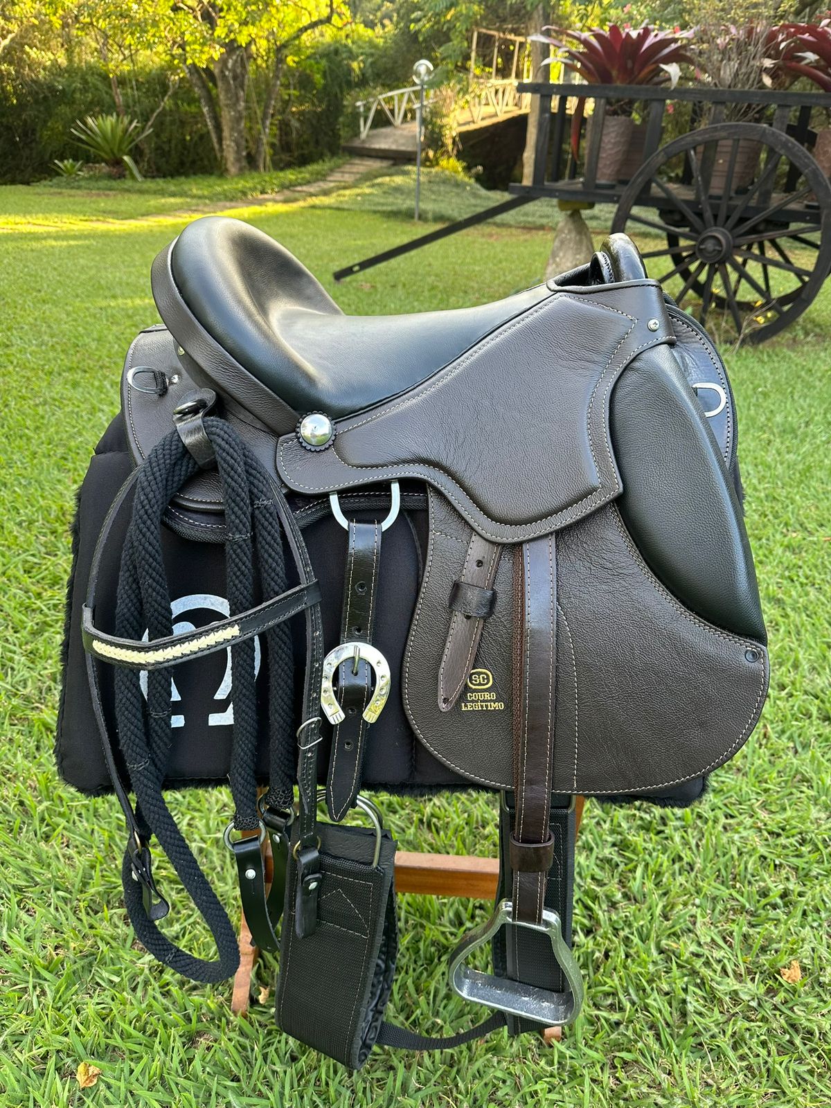 Nossa Sela Pura Marcha é produzida em couro legítimo de alta qualidade, oferecendo durabilidade, conforto e segurança tanto para o cavaleiro quanto para o animal.